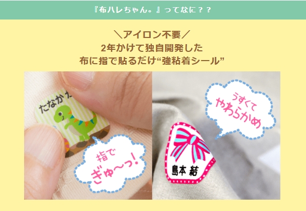 そんなときに便利なのが、ノンアイロンタイプや布用のお名前シール「布ハレちゃん」です。