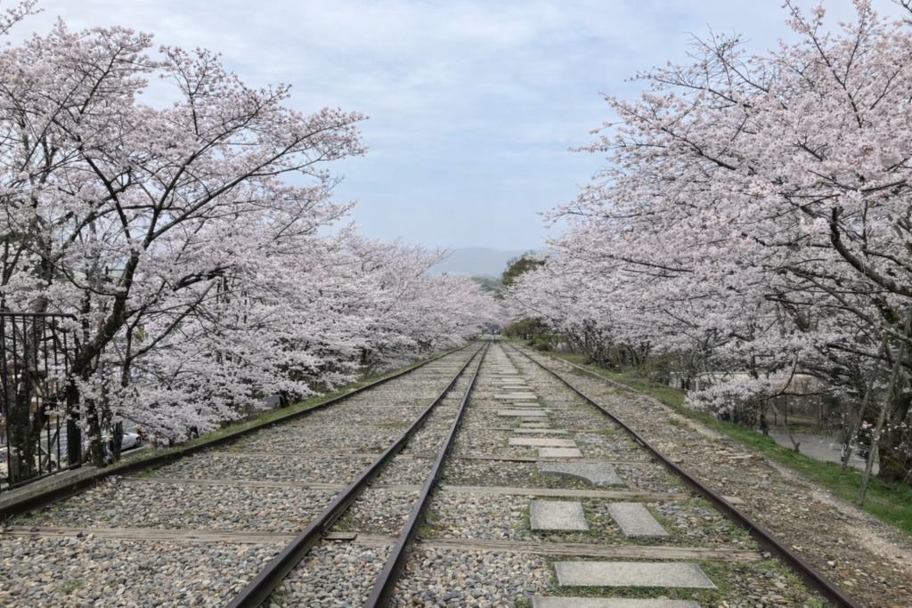 かつての鉄道跡に桜が並ぶ、京都屈指のフォトスポット。