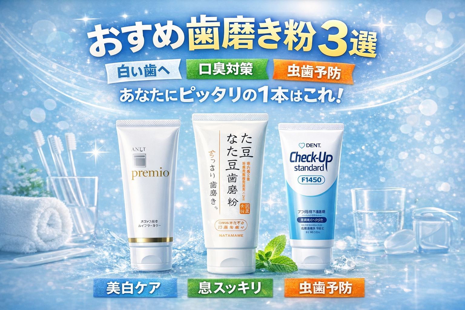 歯磨き粉って、正直“全部入り”を探し始めると迷子になります。そこで今回は、役割がはっきり違う 3本に絞りました。