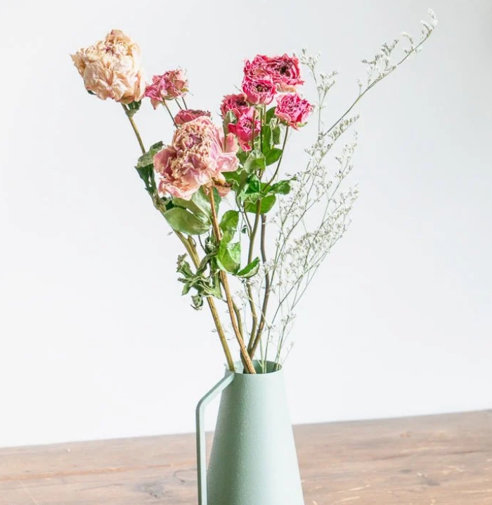 1か月前・2か月前のお花と、新しく届いたお花を一緒に束ねることができます。