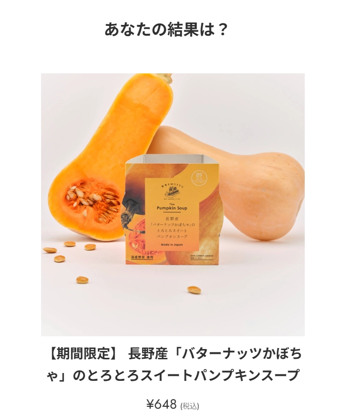 オンラインショップのトップページではあなたにぴったりなスープを診断することができます。