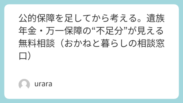 公的保障を足してから考える。遺族年金・万一保障の“不足分”が見える無料相談(おかねと暮らしの相談窓口)
