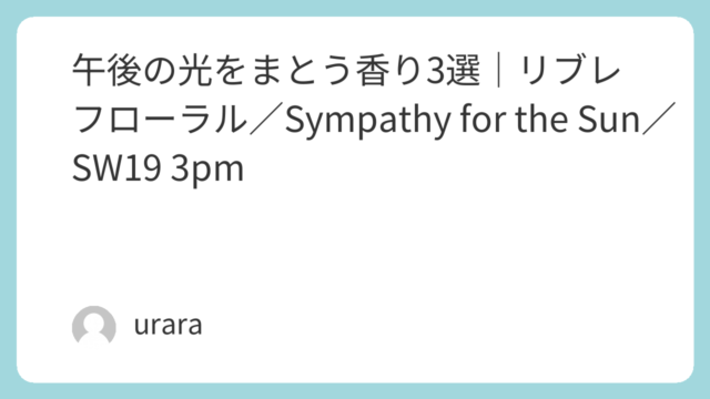 午後の光をまとう香り3選|リブレ フローラル/Sympathy for the Sun/SW19 3pm